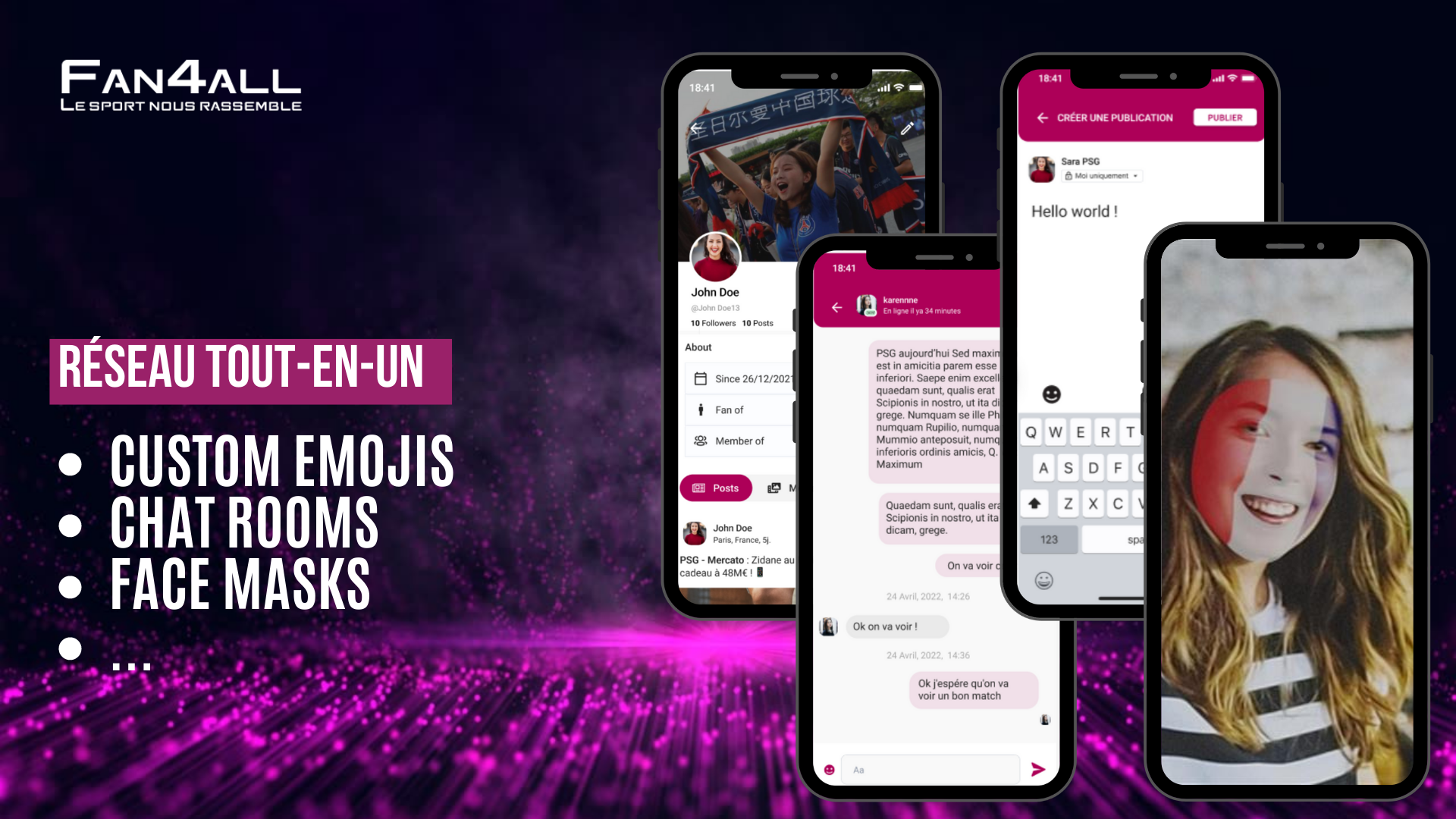 AH : Sur notre plateforme, il n’y a pas que des expériences mises en vente. Fan4All, c’est aussi une plateforme qui permet aux utilisateurs de discuter et d’interagir en communautés autour du sport : Contenus exclusifs, fonctionnalités de Facemasks virtuels ou d’émoticônes personnalisés aux couleurs des clubs et des pays… et bien d’autres aspects de l’expérience utilisateur qui, effectivement, positionnent Fan4All en tant que réseau social dédié au sport.