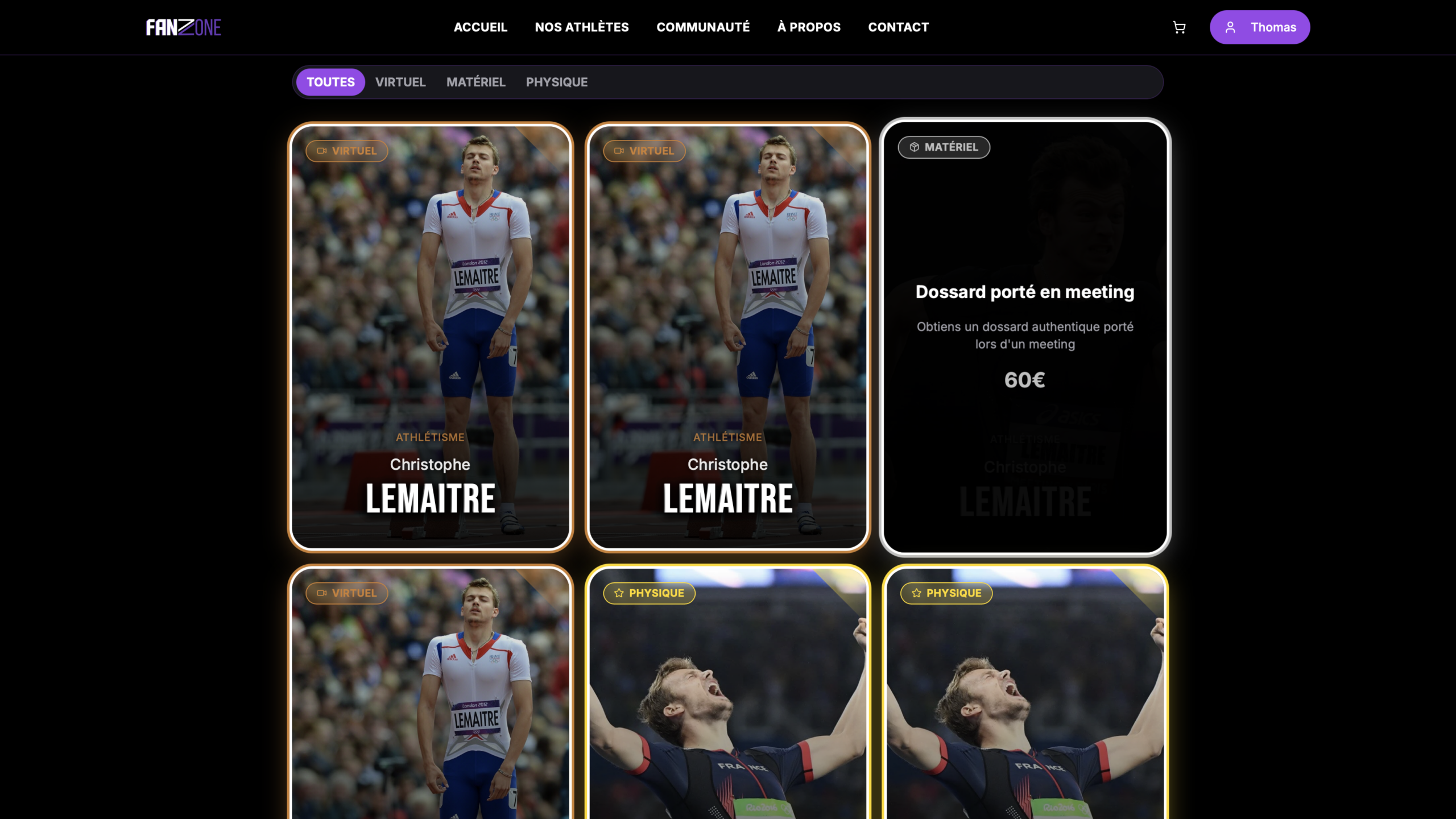 T.M. : Les cartes matérielles (objet porté et dédicacé par le sportif) rencontrent beaucoup de succès. Un athlète a déjà vendu les siennes en intégralité !