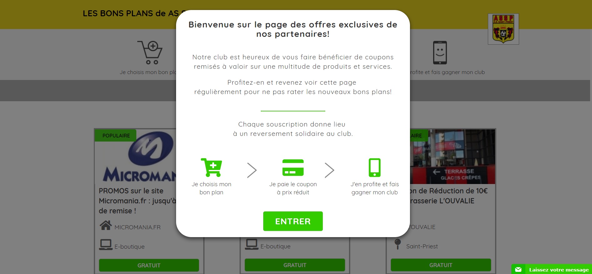A coté de la plateforme de LIVES, nous venons de lancer une seconde solution pour les clubs sportifs amateurs : LesBonsPlansduClub. Chaque club qui le souhaite dispose d’une page web dédiée et à ses couleurs, sur laquelle sont proposés des bons plans que nous avons négociés, complétés par ceux que lui souhaite négocier avec ses partenaires commerces et restaurants. A chaque fois que quelqu’un profite d’un bon plan, le commerce ou restaurant verse une contribution qui nous permet de participer au financement des clubs. C’est un système qui correspond bien au souci des clubs qui ont peu de moyen mais peuvent valoriser et animer leur communauté.