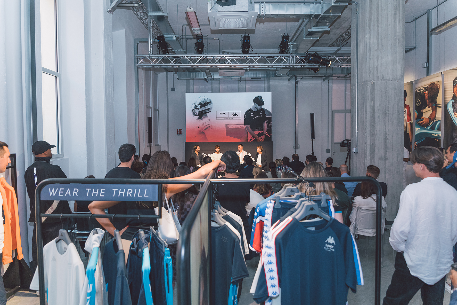 Rémi Garnier : Nous célébrons le lancement de la nouvelle collection Kappa avec Alpine F1 ici à Milan dans notre showroom. Kappa appartient à la société BasicNet dont le siège est à Turin. Un groupe qui détient également d’autres marques comme K-Way, Sebago..