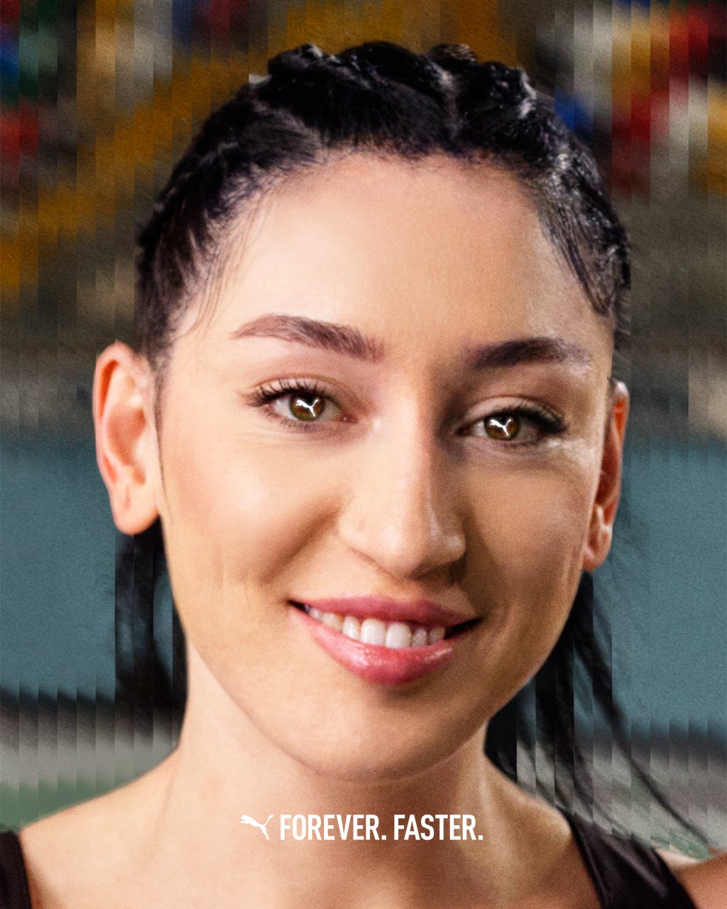 En cette année olympique, Puma met en avant également dans sa campagne l’un des symboles forts de la marque autour des JO, à savoir les lentilles de contact affichant le félin.