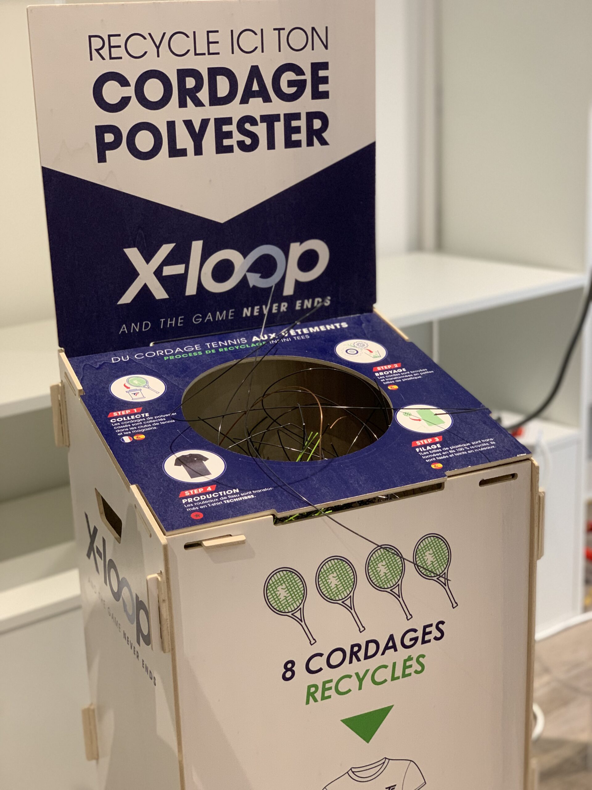 Pour cela, la marque opère de différentes manières. « On collecte ce cordage en polyester via 20 magasins partenaires partout en France qu’on équipe d’un collecteur qui permet de récupérer les cordes, une sorte de poubelle, mais un peu stylisé donc je préfère le mot collecteur (rires). » nous précise la responsable RSE de la marque. Tecnifibre collabore également avec son fournisseur Cousin, dans le nord de la France qui lui envoie des chutes de production ou encore certains tournois de l’ATP partenaire comme le Masters 1000 de Monte-Carlo.