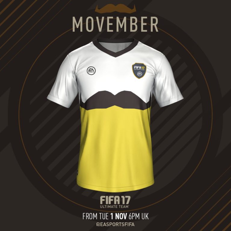 Ainsi dans le mode FIFA Utlimate Team, une sélection de joueurs seront estampillés de la mention Movember. Des Défis création d’équipe Movember seront proposés tout au long du mois avec de superbes récompenses comme le maillot Movember. Conçu par le designer de la communauté FIFA Emilio Sansollini, le maillot Movember peut être obtenu en réussissant le DCE Movember.