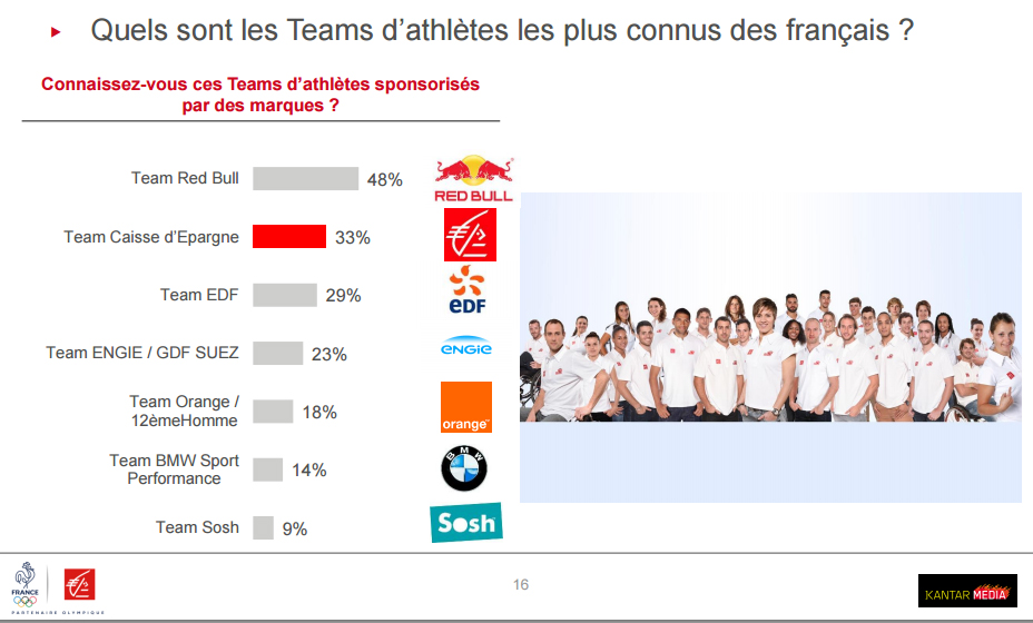 Dans son étude pour la Caisse d’Epargne, Kanter Media s’est également intéressé à l’impact des Teams d’athlètes connus des français. Le Team Caisse d’Epargne serait identifié par 33% des sondés.