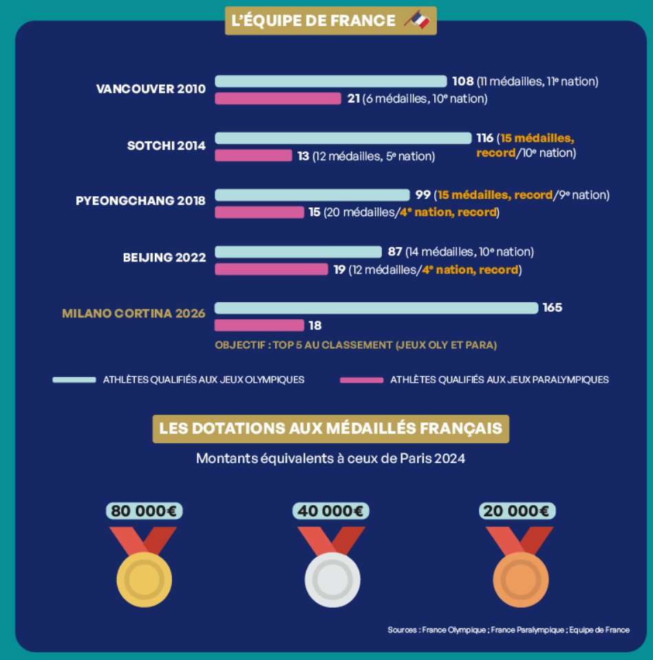 Pour la France, Milan-Cortina constitue un test grandeur nature avant les Alpes 2030, avec un objectif sportif affiché : intégrer le top 5 du classement olympique et paralympique.