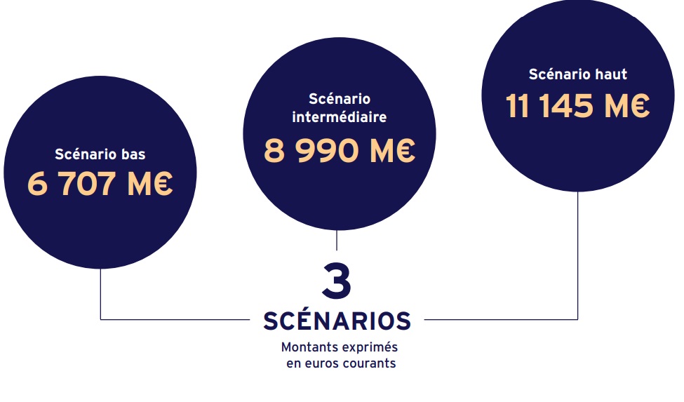 Les deux autres, bas et haut, tablent sur 6,7 milliards d’euros et 11,1 milliards d’euros.