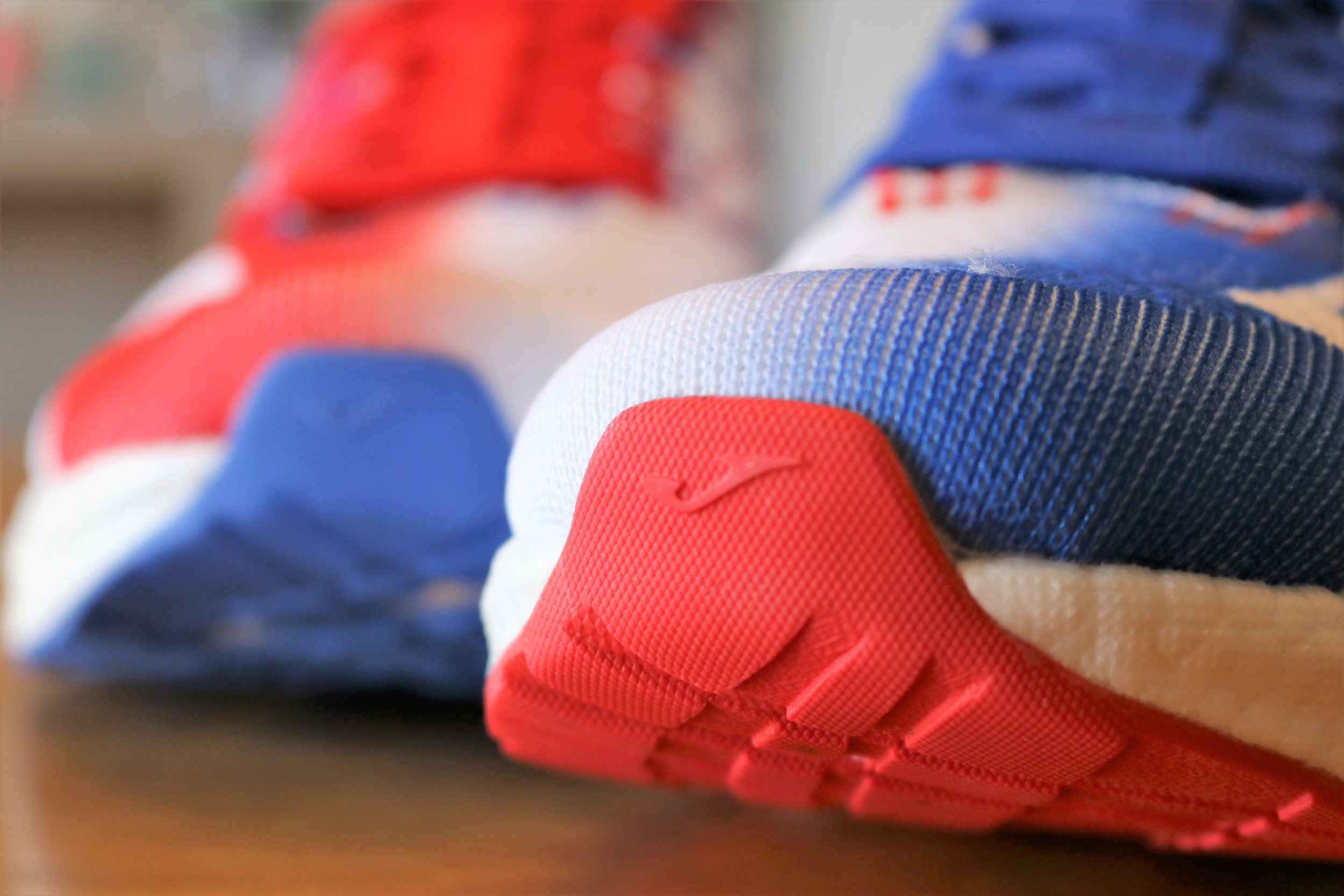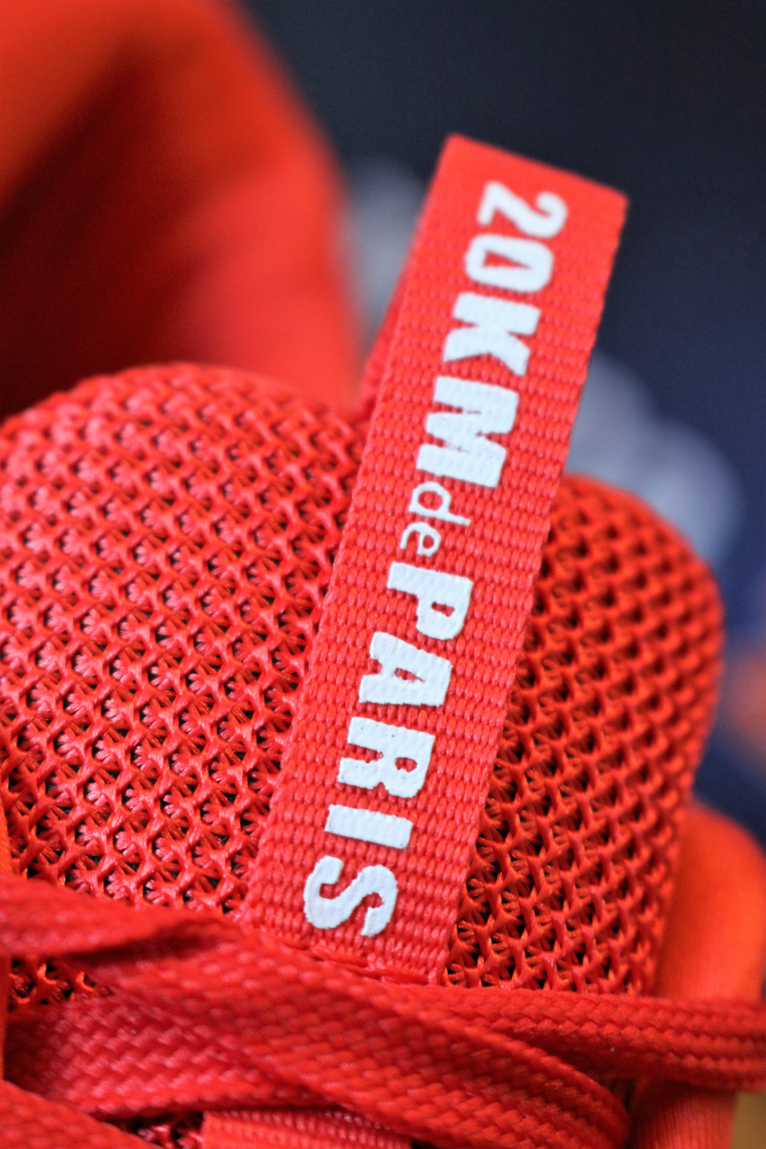 Côté look, la chaussure de running est plus que jamais un hommage à Paris et à la France. Chaque chaussure a un motif de couleur différent qui ensemble, et du point de vue du coureur, forment le drapeau de la France (bleu-blanc-rouge). Le nom de la ville PARIS figure également sur les extérieurs des chaussures.