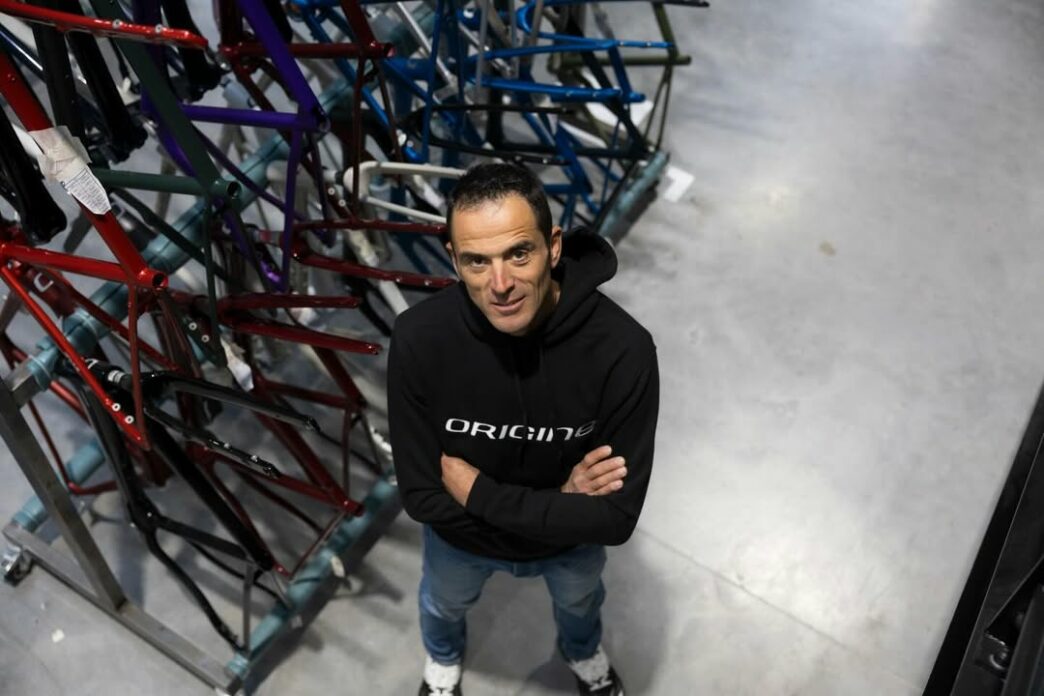 Julien Absalon dans le siège de l'entreprise Origine, dont il est ambassadeur, près de Valenciennes. Crédit photo : Origine.