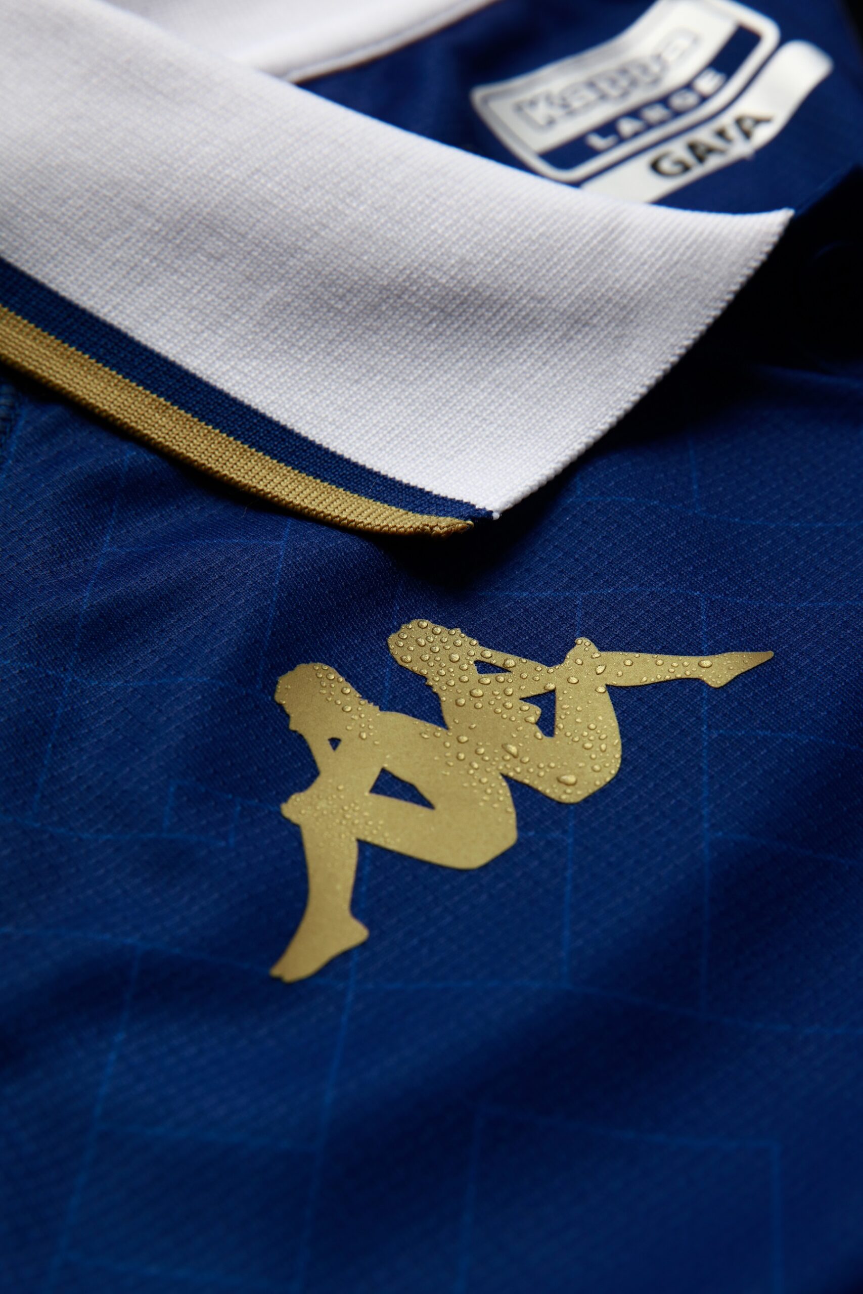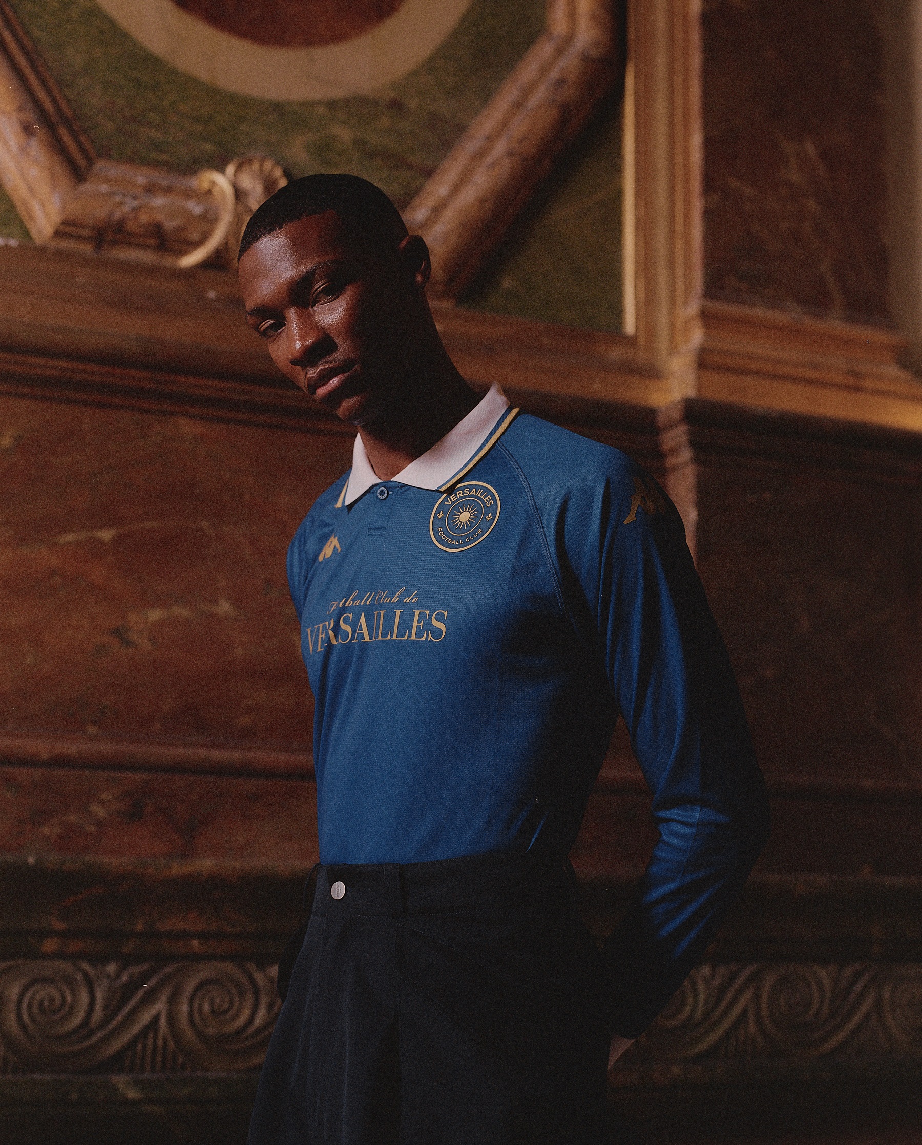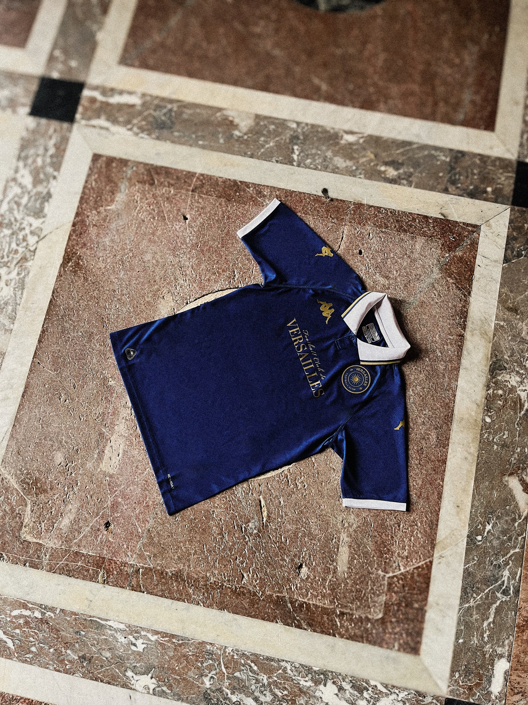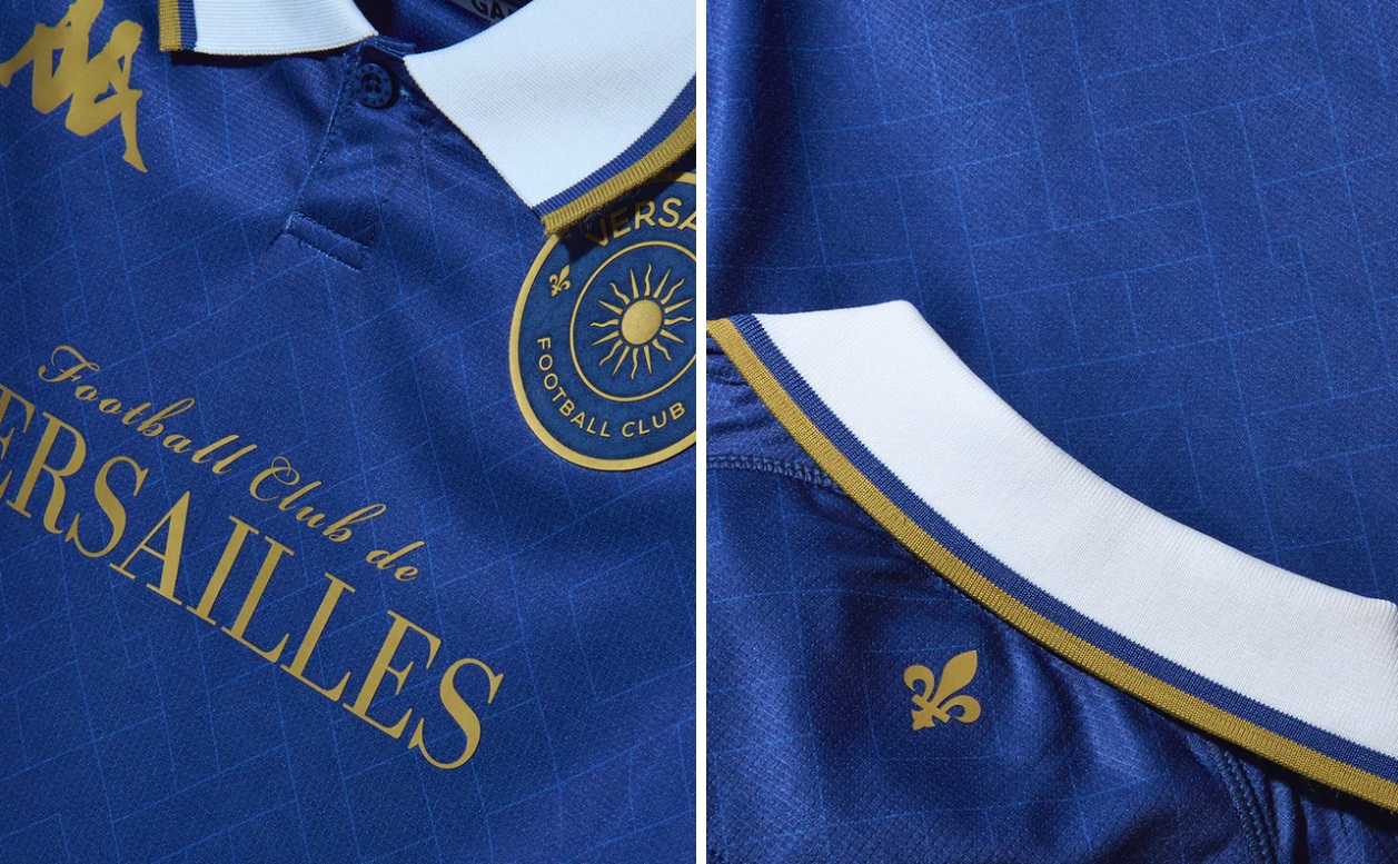 « Le maillot domicile 2024-25 est une ode au parquet versaillais et son motif emblématique de l’histoire de France. Ce parquet est le symbole de l’art de vivre à la française du XVIIème au XIXème siècle. Constitué sous forme de panneaux en bois généralement en chêne, ce type de parquet tient son nom du château de Versailles pour lequel le motif a été créé afin de remplacer les sols du château à l’époque en marbre » explique Kappa dans son communiqué. « Le nouveau maillot domicile se compose d’un maillot à dominante bleu avec le motif parquet Versaillais appliqué en all over sur la face avant du maillot en doré. Il est complété par un short et des chaussettes bleues. »