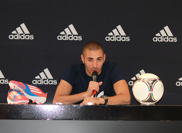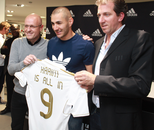 Karim Benzema is all in pour Adidas – ce qui signifie Karim Benzema donne tout pour Adidas – puisqu’il vient de paraphé son contrat avec la marque aux trois bandes pour « au moins deux coupes du Monde », comme l’a annoncé Alain Pourcelot, Directeur général Adidas France.