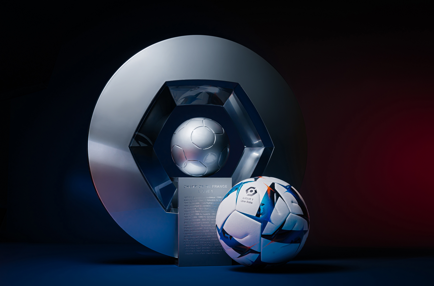 Pour son premier ballon de la Ligue 1 Uber Eats, l’équipementier a décidé de mettre en avant l’intensité et la rivalité. « Emblématique de ce sport collectif, la ferveur qui émane des plus belles rivalités, est ainsi représentée sur chaque face du ballon par quelques légendaires oppositions qui ont écrit l’histoire du championnat »