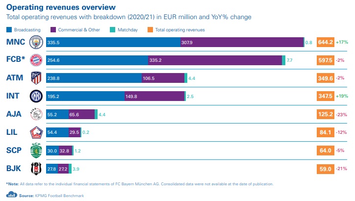 Malgré cette absence de chiffre d’affaires les jours de match, Manchester City, champion de Premier League, a enregistré des revenus de 644,2 millions d’euros dont 335,5M€ de droits TV.