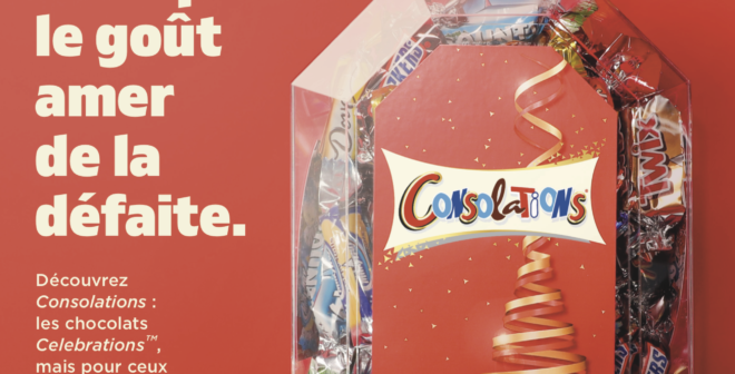 A l’occasion du classico PSG-OM de dimanche (4-0), le groupe Mars Wrigley (Snickers, Twix, Bounty, …) a … Lire la suite de La boîte de chocolats « Celebrations » lance « Consolations » et surfe sur le classico PSG-OM (et la défaite des marseillais)