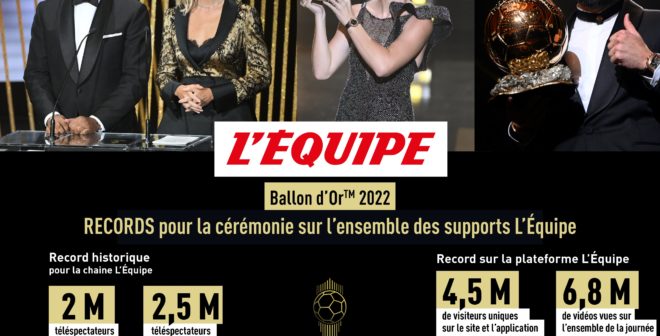 Hier soir, la Chaîne L’Equipe a enregistré son record d’audience à l’occasion de la diffusion de la cérémonie … Lire la suite de La chaîne L’Equipe enregistre la meilleure audience de son histoire avec la Cérémonie du Ballon d’Or 2022 et Karim Benzema