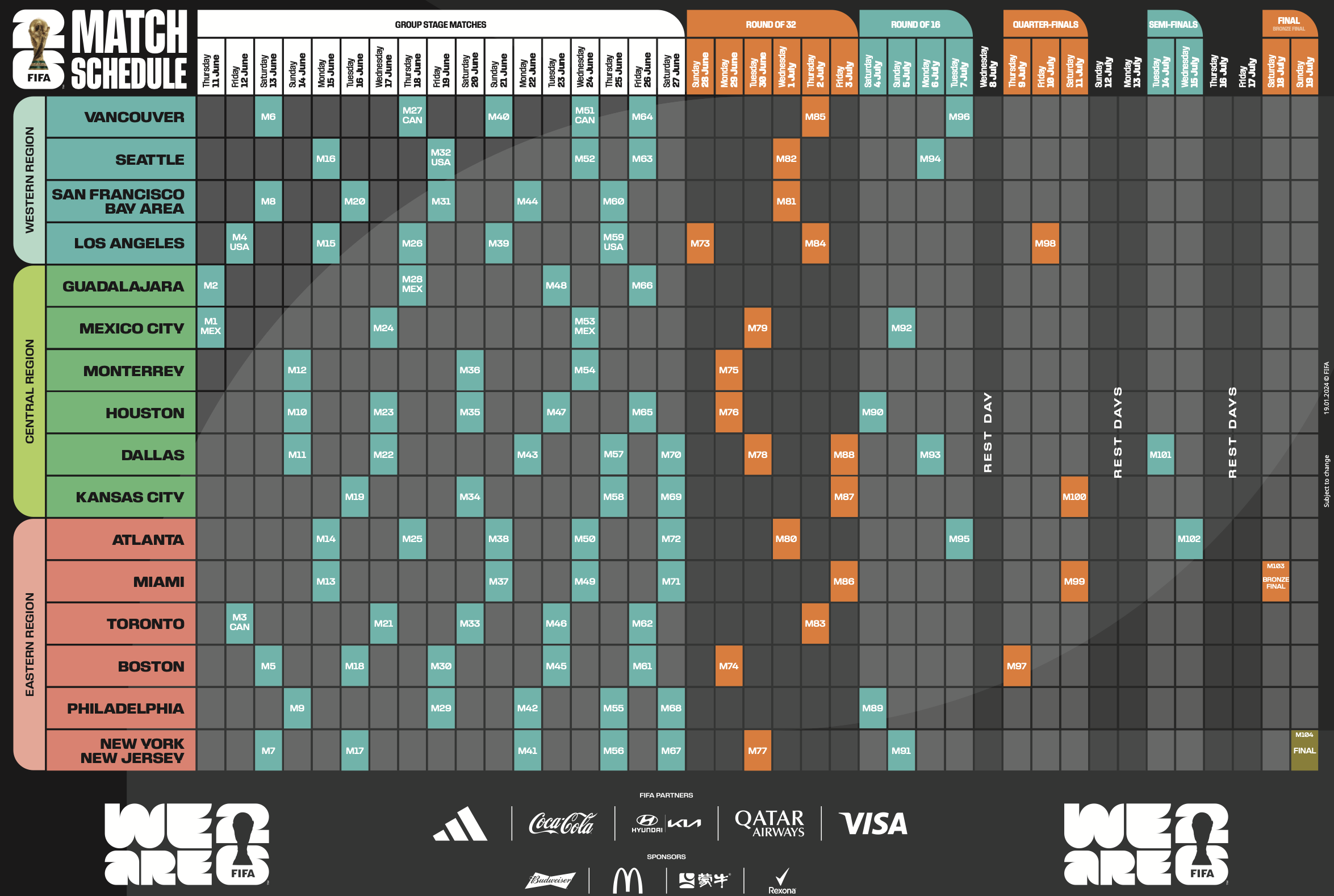 Hier, la FIFA a dévoilé officiellement le calendrier des matchs et les stades qui accueilleront la Coupe du Monde de football 2026 disputée dans 3 pays, les États-Unis, le Canada et le Mexique.