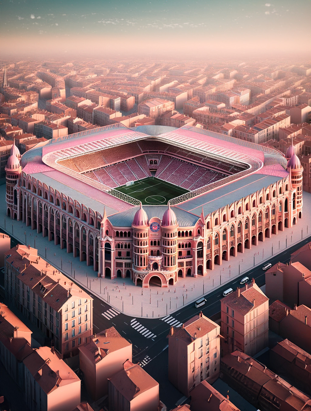 À l’aide de l’intelligence artificielle, le but est de créer des stades dont le logo, le surnom ou la particularité du club se mêle à son architecture. Fantasques et imaginaires mais souvent impressionnants, ces visuels font le buzz sur les réseaux avec un contenu engageant.