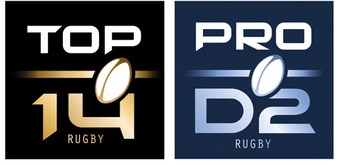 – Les deux identités TOP 14 et PRO D2 sont construites sur la base d’une structure commune, un bloc marque carré, avec chacune leur personnalité.
