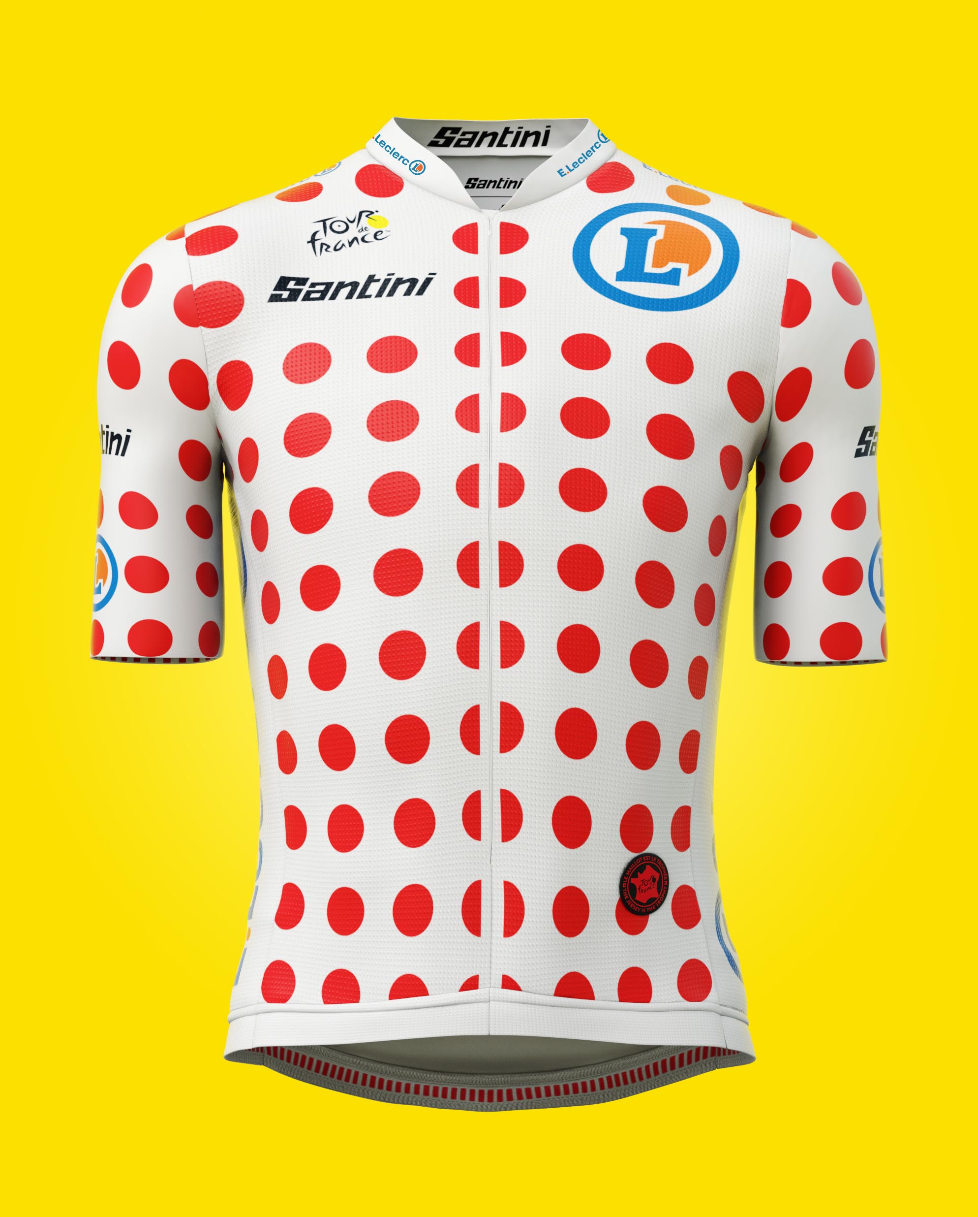 « Le concept lié au design des maillots fait référence au principe que « Le maillot est le trophée » ! Nous avons donc voulu souligner que le prix du gagnant est le maillot lui-même » précise Fergus Niland, directeur créatif de Santini.