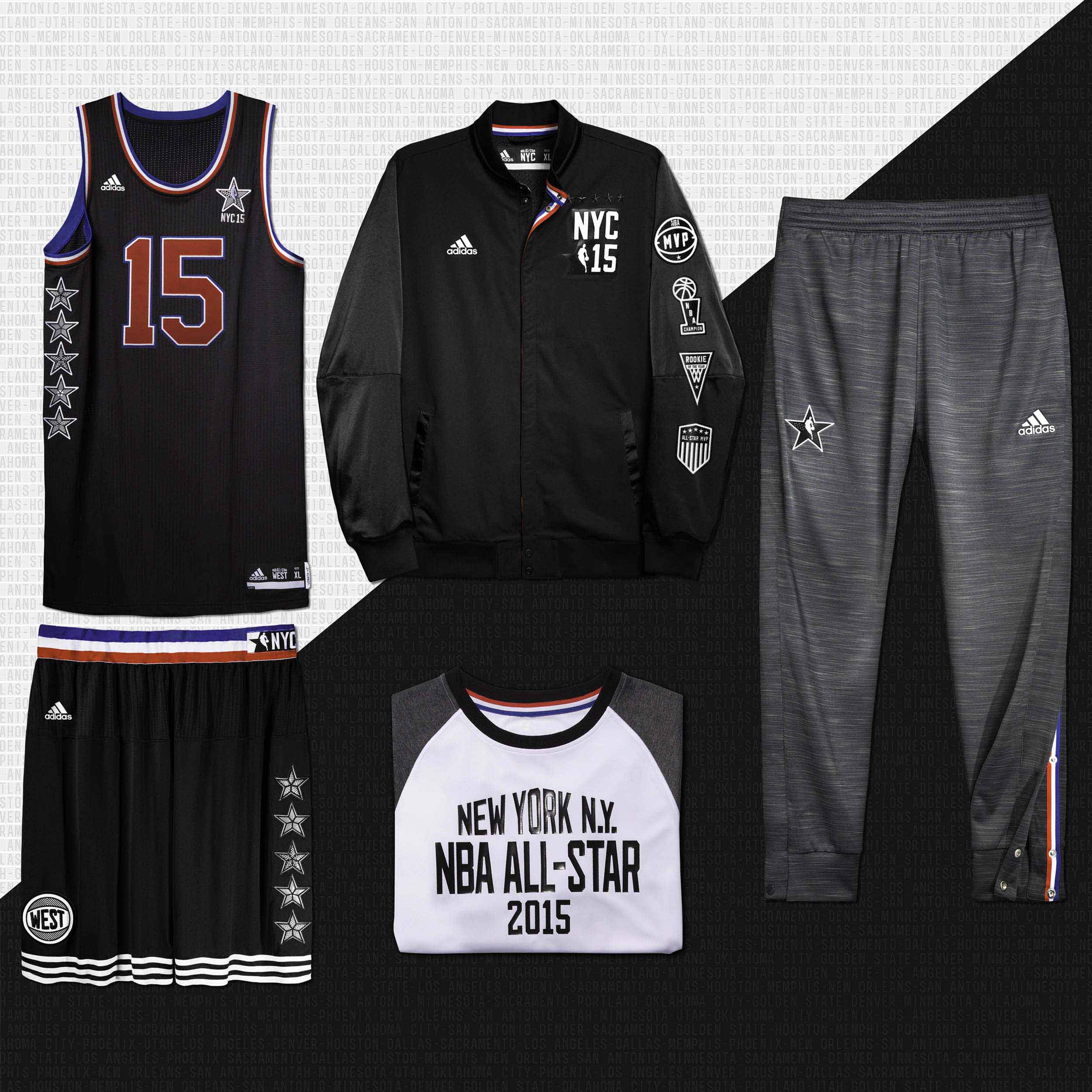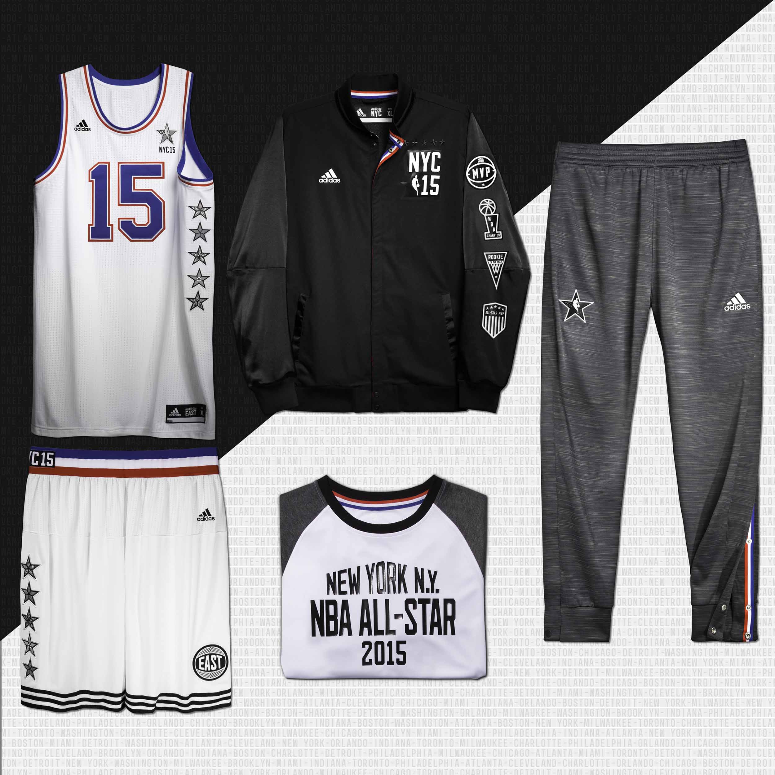 adidas, fournisseur officiel des tenues de match de la NBA a dévoilé le look des maillots et équipements du 64ème NBA All-Star Game qui se tiendra à New York le 15 Février 2015.