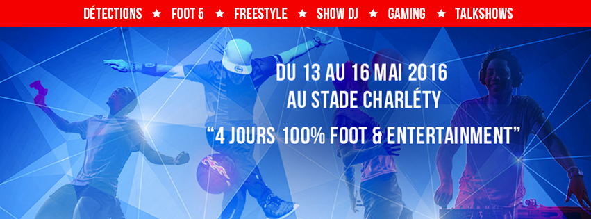 Du 13 au 16 mai 2016, l’évènement « 100% Foot & Entertainment » s’installe au Stade Charléty pour 4 jours intenses qui raviront les passionnés de ballon rond sous toutes ces formes.