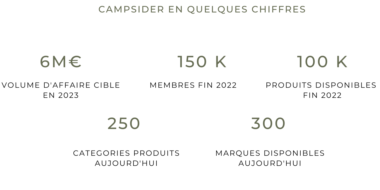 Rapidement, Campsider souhaite référencer plus de 100 000 équipements en ligne. « Afin de muscler ses pôles Marketing, Communication, Opérations et Tech, des recrutements sont prévus pour permettre de doubler les équipes et de passer de 8 à plus de 15 employés dans les 6 prochains mois » ajoute le communiqué.