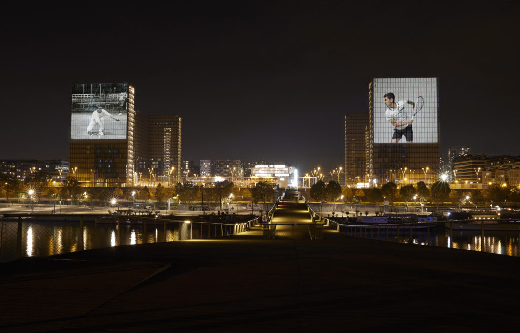 Malgré sa défaite en finale du dernier Masters 1000 de la saison, Lacoste a tenu à célébrer le retour du tennisman serbe sur la plus haute marche en s’offrant une projection nocturne dans le quartier de la bibliothèque François Mitterrand située à quelques centaines de mètres de l’AccorHotels Arena.