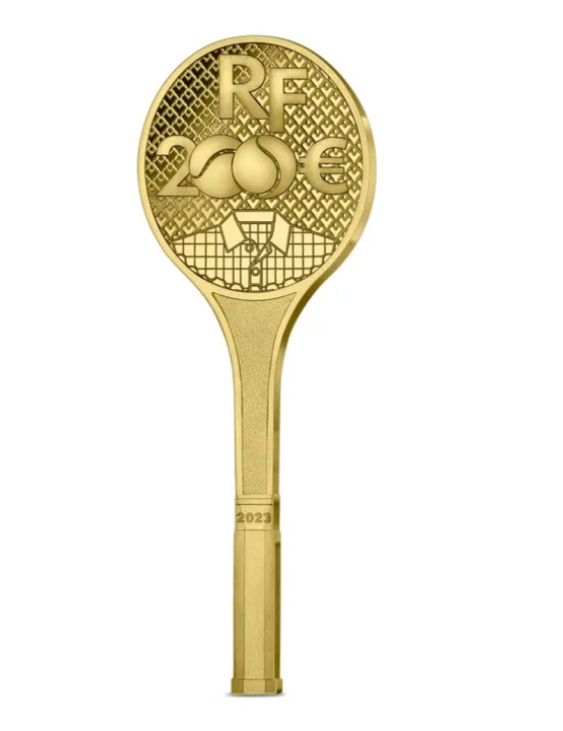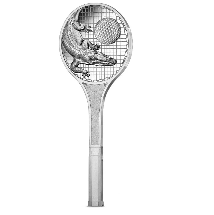 Ces monnaies en forme de raquette font doublement référence à René Lacoste qui est également le concepteur de la première raquette métallique.