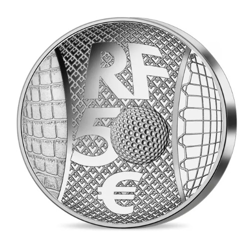 Côté revers, sur un fond sablé qui évoque la terre battue des courts de tennis de Roland-Garros (dont Lacoste est partenaire depuis plus de 50 ans), des lignes rappellent celles des courts. C’est là que figurent la valeur faciale de la monnaie, le millésime et 1933, date de création de la Maison Lacoste et la silhouette de René Lacoste, champion de tennis et fondateur de la marque qui célèbre ses 90 ans en 2023.