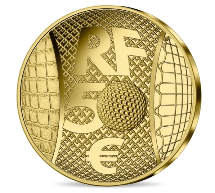 Côté face, on retrouve un cordage sur lequel figurent un crocodile et une balle. En hommage à un autre sport cher à la marque, la balle de tennis revêt la texture d’une balle de golf. Côté revers, on retrouve le célèbre polo Lacoste représenté sous la valeur faciale et dont les zéros s’apparentent à des balles de tennis.