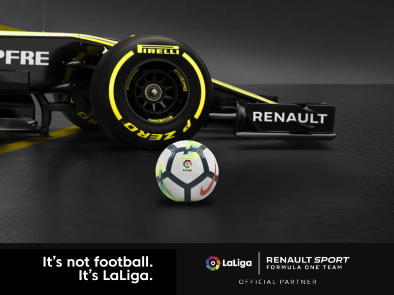 « Nous sommes très heureux d’annoncer ce partenariat passionnant et unique avec LaLiga, l’un des meilleurs championnats de football au monde. Renault Sport Formula One Team et LaLiga partagent de nombreux objectifs comme étendre leur notoriété à partout dans le monde » a ajouté Antoine Magnan Directeur des partenariats de Renault Sport Racing. « En croisant les calendriers de la F1 et de LaLiga, nous couvrons toute l’année et les passerelles entre nos deux communautés seront un tremplin idéal vers d’excitantes initiatives. »
