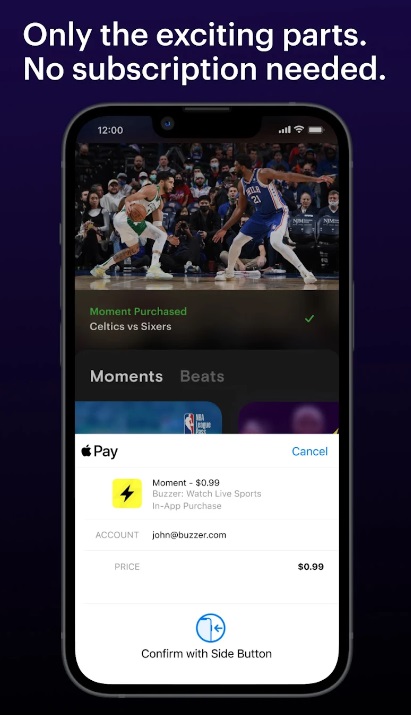 Lancé il y a un an, Buzzer permet de « picorer » des bouts de matchs grâce au micropaiement. Les fans peuvent acheter quelques minutes d’un match à partir de 0,99$.