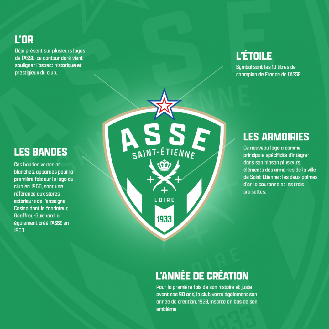 Par ce nouvel emblème, l’ASSE porte des valeurs chères à la ville de Saint-Étienne : respect de l’héritage, combativité et innovation.