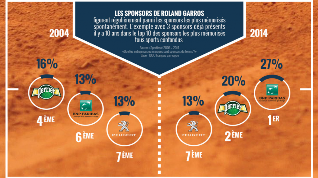 Avec cet ensemble d’activations offline, Perrier compte bien surprendre les fans. Et de ce fait, renforcer la présence à l’esprit de sa marque et continuer à figurer parmi les sponsors de Roland-Garros les plus mémorisés spontanément (étude Sportlab ci-dessous).