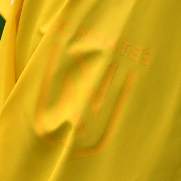 Le ciré est frappé du logo du FC Nantes sur la manche.