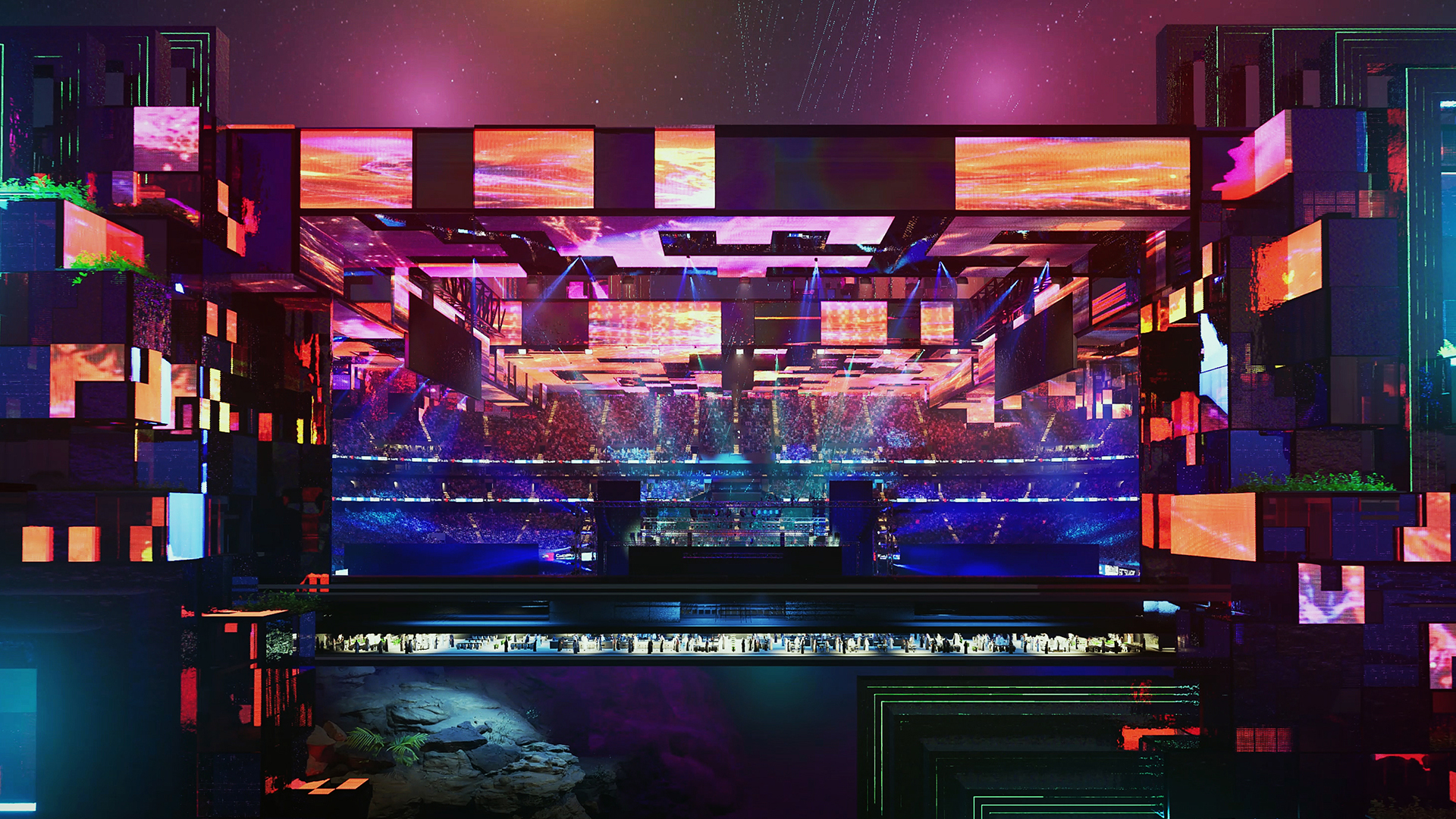 Ce stade devrait être le premier lieu au monde proposant un toit rétractable, un terrain et un mur LED combinés. Un stade capable de se transformer en quelques heures selon les évènements accueillis. Le mur LED, lorsqu’il n’est pas allumé offrira une vue imprenable sur la ville de Qiddiya.