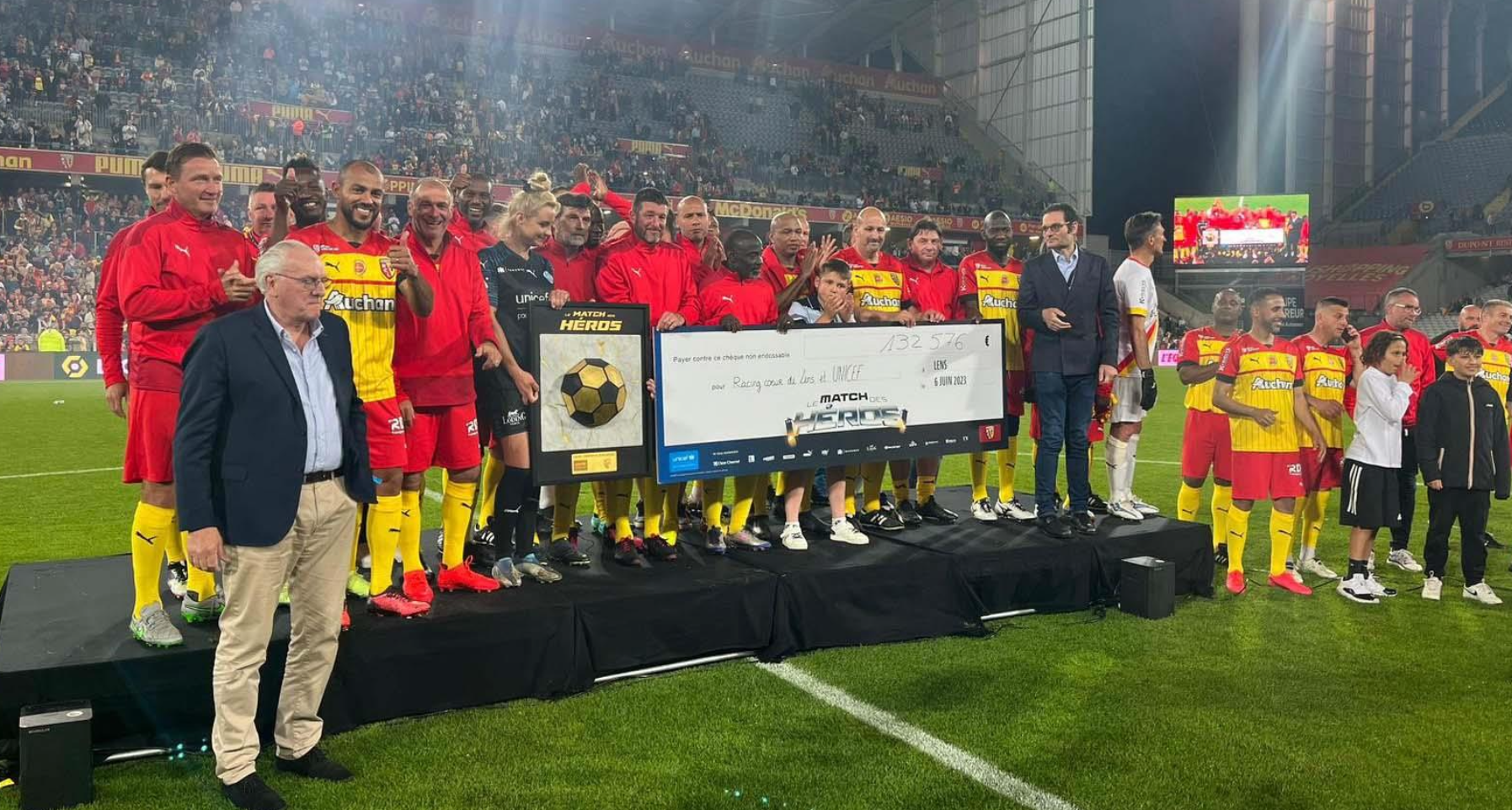 Le RC Lens légende s’est imposé (5-5, 2-1 t.a.b) mais le plus important reste le chèque de 132576 € pour l’UNICEF remis à la fin de la rencontre #MatchdesHéros pic.twitter.com/sQ9EgqECJP