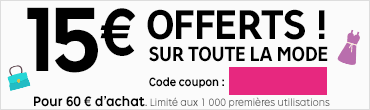 Aujourd’hui et jusqu’à ce soir 23h59, Priceminister lance une promotion très intéressante sur la catégorie Mode en offrant 15€ dès 60€ d’achat + 20% du montant de vos achats remboursés en bon d’achats ! Pour en profiter, le code promo est R-FAS4. Attention, l’offre est limitée aux 1000 premières utilisations.