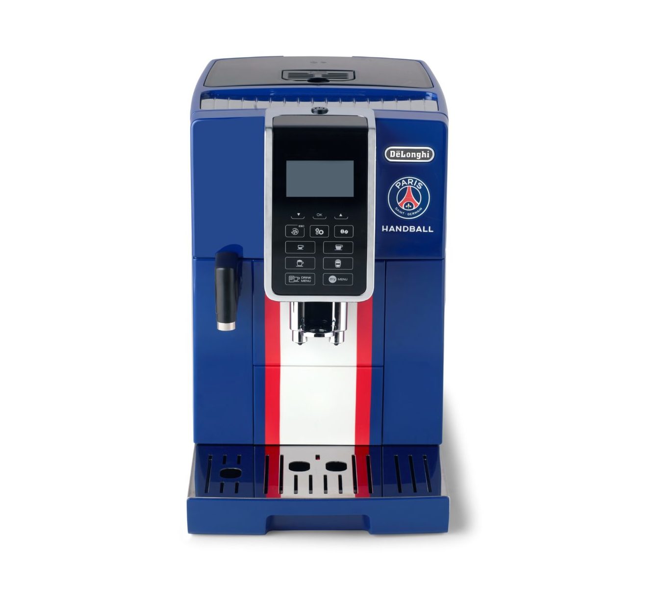Voici les visuels des machines à expresso De’Longhi x PSG Handball que nous nous sommes procurés.