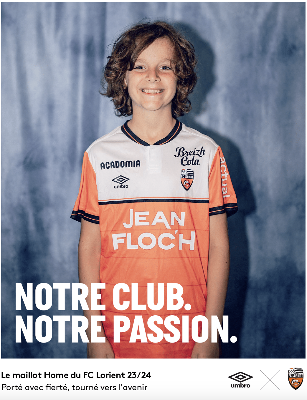 Une thématique « photo de classe » qui n’est pas sans rappeler celle du FC Lorient avec Umbro pour son nouveau maillot 23-24.