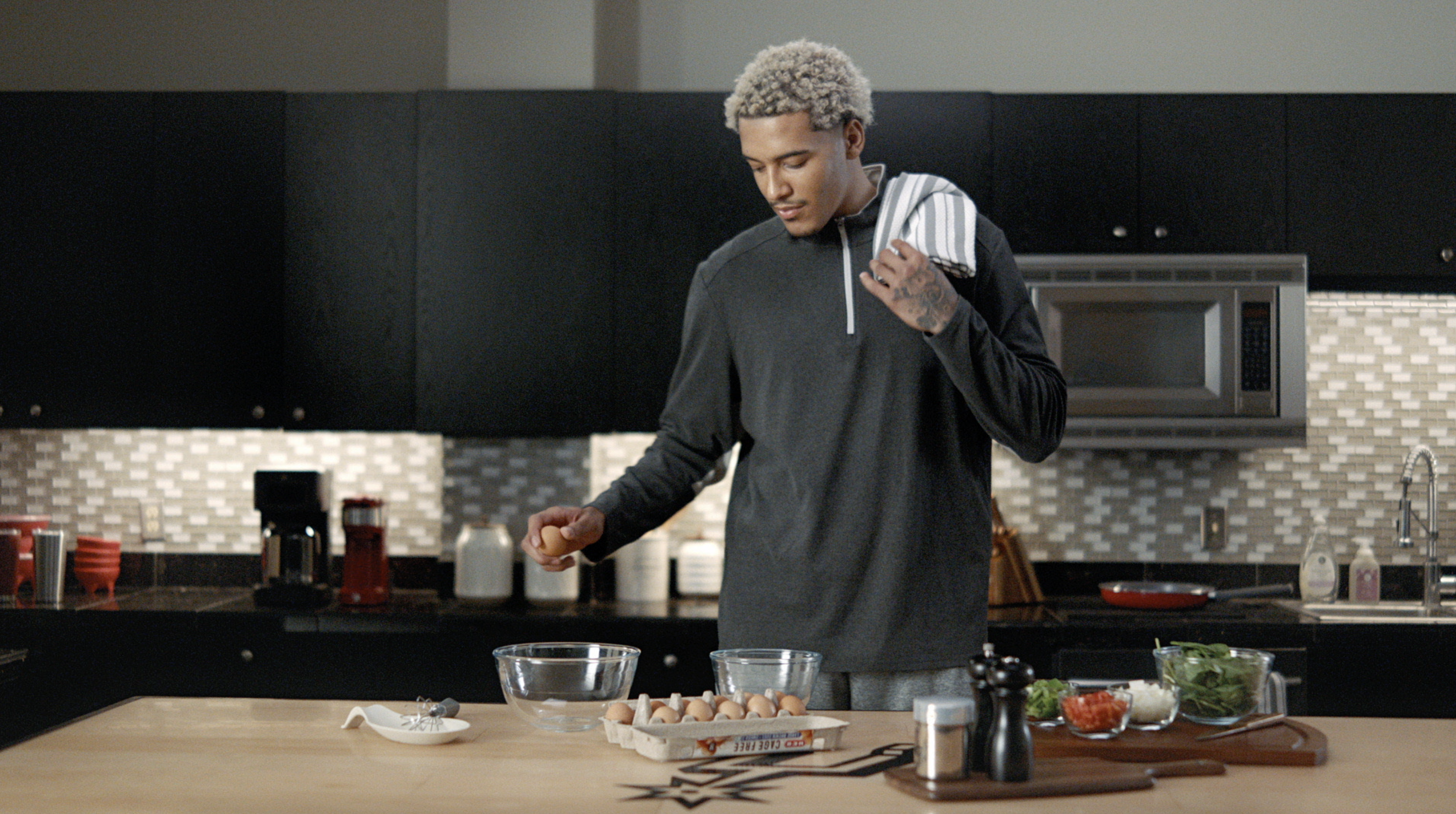 Dans le premier spot, H-E-B a décidé de jouer de la taille et de l’envergure de Wemby. Lorsqu’il rentre des courses, le joueur français ne fait qu’un voyage pour rentrer les sacs.
