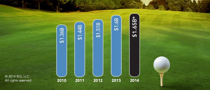 En fin de semaine dernière, la société américaine IEG a présenté les chiffres de sa dernière étude concernant le sponsoring dans le golf (tournois, évènements de charité, joueurs/joueuses, hospitalités). En 2014, les dépenses de sponsoring s’élèveraient ainsi à 1,65 milliard de dollars (1,35 milliard d’euros), soir une augmentation de 3,1% par rapport à l’année 2013.