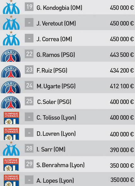 Top 30 des salaires mensuels des joueurs de Ligue 1 (2023-2024) – L’Equipe