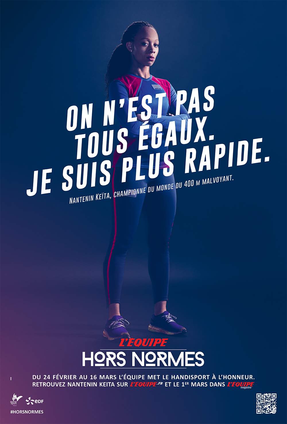 Après un teasing annonçant dans les colonnes du quotidien L’Equipe que « Yannick Noah n’est pas le dernier Français à avoir gagné Roland-Garros » et que « Marie-José Pérec n’est pas la seule Française championne du monde de 400 m », ce sont Stéphane Houdet, vainqueur de Roland Garros en tennis fauteuil 2012 et 2013, et Nantenin Keita, championne du monde de 200 m et de 400 m malvoyant en 2006, qui viennent en réponse et incarnent ces athlètes hors du commun.