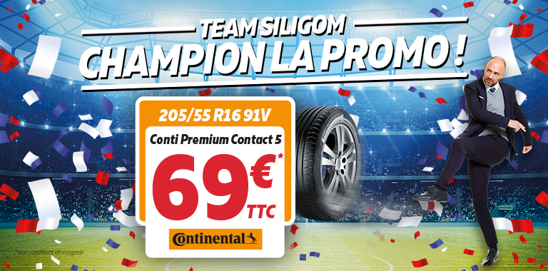 Jusqu’au 04 août 2018, le pneu CONTINENTAL PREMIUM CONTACT 5 de dimension 205/55 R16 91V est en vente à 69€ dans la limite des stocks disponibles et selon les approvisionnements dans les points de vente SiliGom participants. Prix hors pose et accessoires. Non cumulable avec une autre offre en cours.