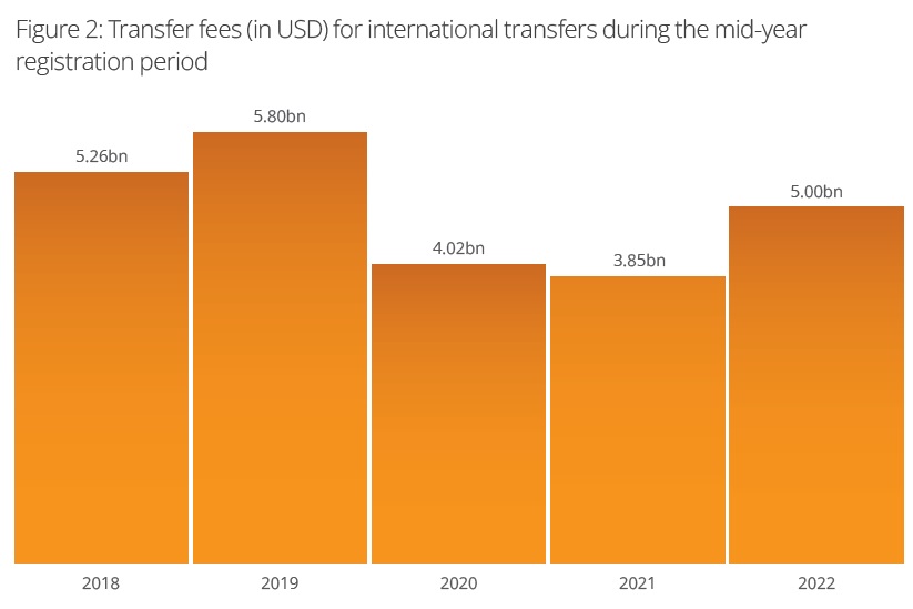 Selon le rapport, 9 717 transferts internationaux impliquant des joueurs professionnels masculins ont été réalisés cet été. Sur ce total, 1 684 ont généré le paiement d’indemnités de transfert pour 5 milliards de dollars. Les commissions officielles pour les agents s’élèvent quand à elle à 494,4 millions de dollars. Des chiffres qui sont évidemment bien plus élevés si on prend en compte les transferts entre clubs d’un même pays.