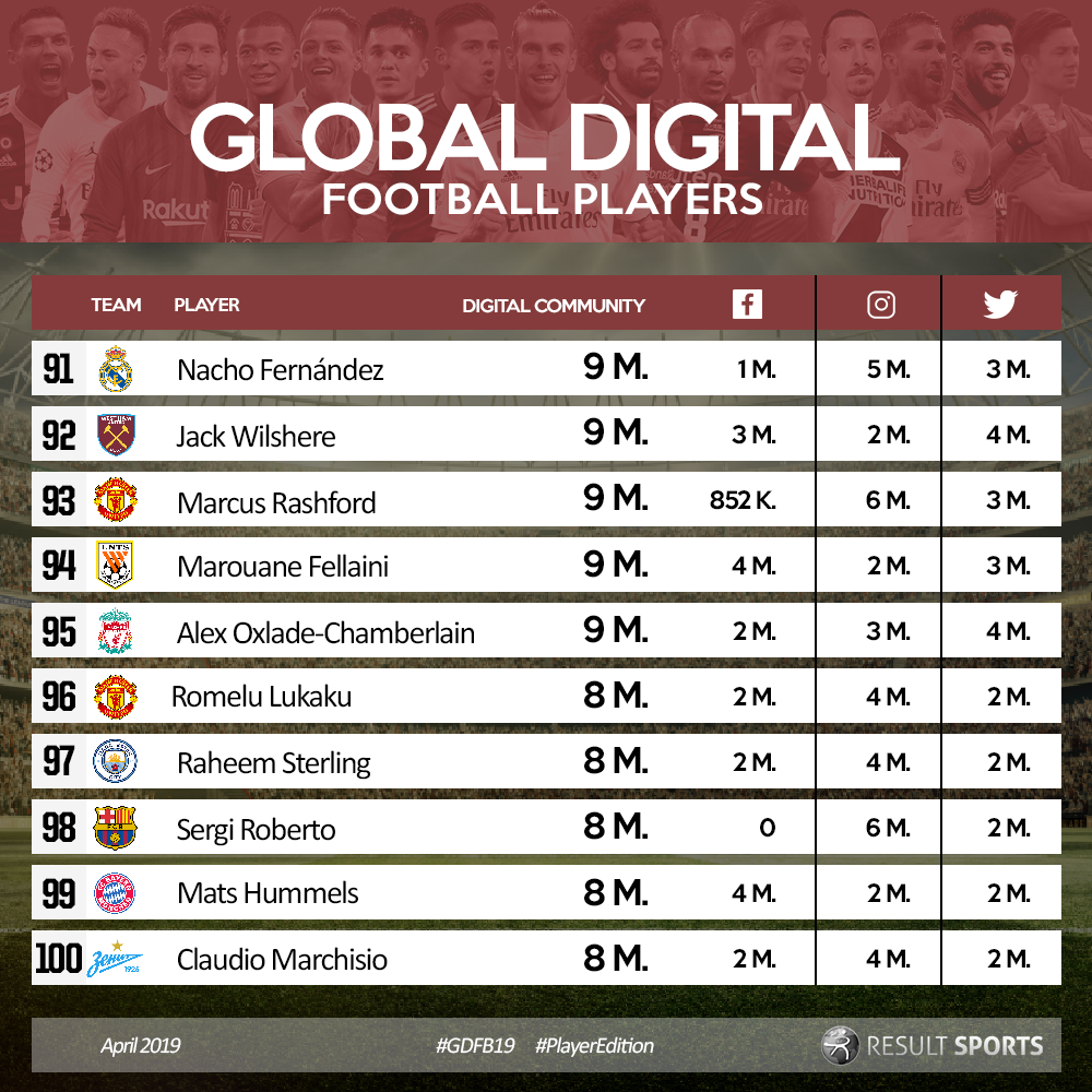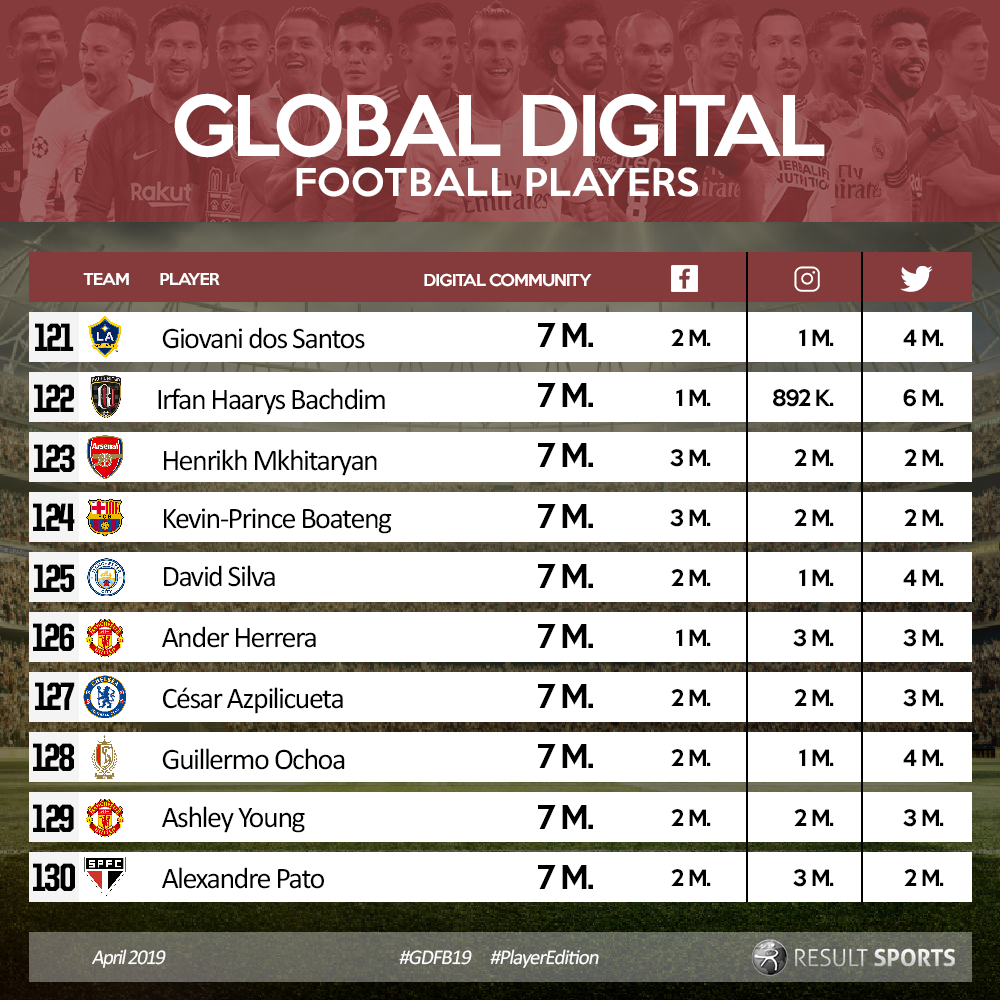 Il y a quelques jours, RESULT Sports a dévoilé son classement des footballeurs les plus puissants sur les réseaux sociaux. Depuis 2010, la société spécialisé dans le monitoring étudie l’impact du digital et collecte des datas sur plus de 26 plateformes sociales.