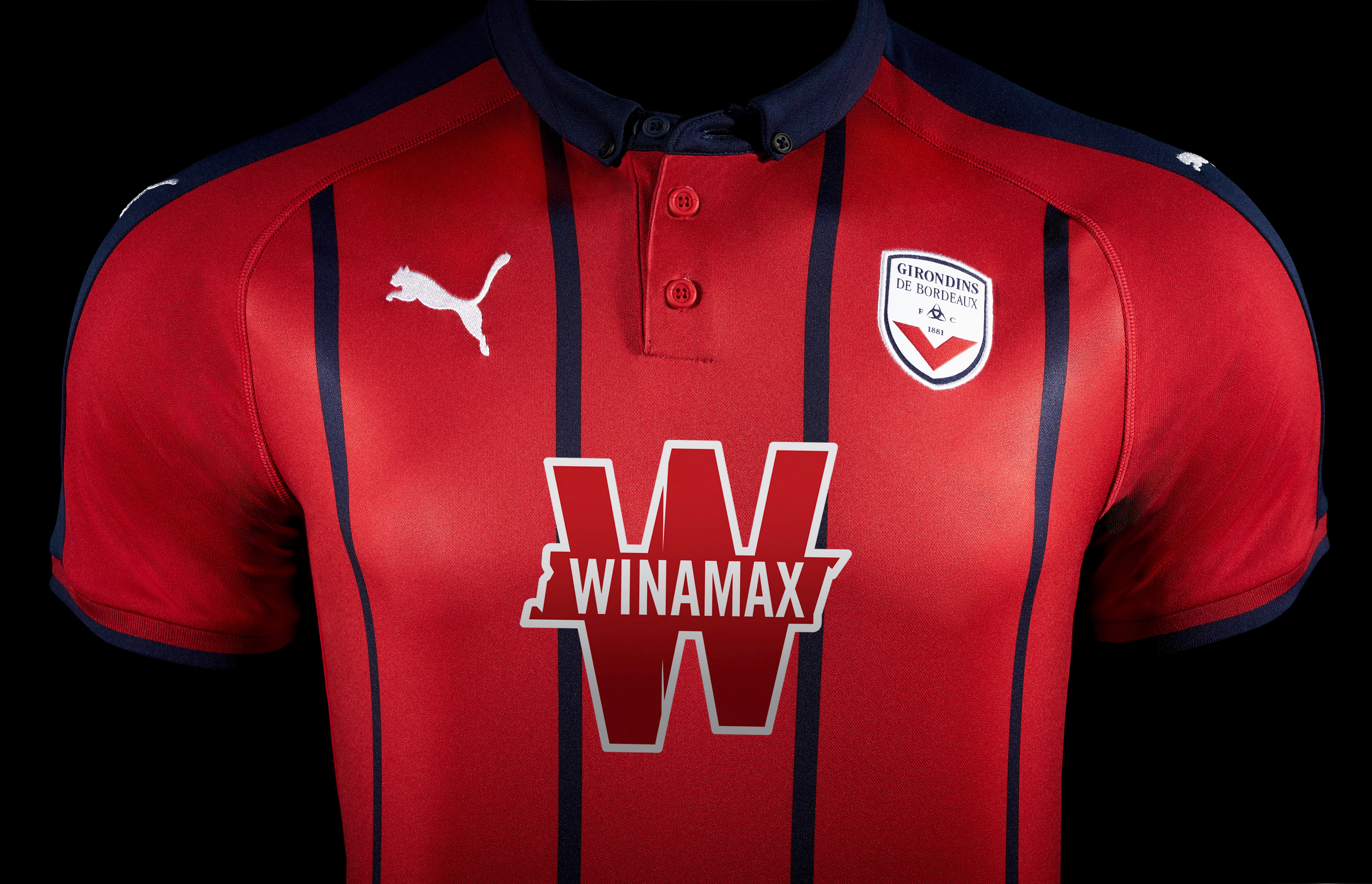 Pour le maillot domicile des Girondins, Puma, nouvel équipementier de l’OM ou de l’AC Milan, fait dans le classique avec du marine et blanc ainsi que la scapulaire. Le maillot est réhaussé par des bandes blanches sur les manches ainsi que son col en V blanc. Pour les déplacements, les joueurs porteront un maillot away rose, blanc et bleu marine. Enfin le troisième maillot reprend le coloris rouge foncé « inspiré du fameux vin de la région, ainsi que les fines rayures bleues marine inspirées du maillot 1995-1996 » précise Puma.