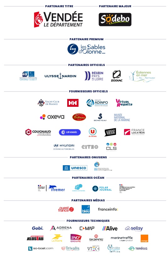 Au rang de partenaire-titre (Naming), on retrouve le département de la Vendée. Au rang en dessous, en tant que Partenaire Majeur, on retrouve Sodebo. Partenaire de la course depuis 2004, l’entreprise agroalimentaire vendéenne participera à sa 6e édition en tant que sponsor de la célèbre course à la voile.
