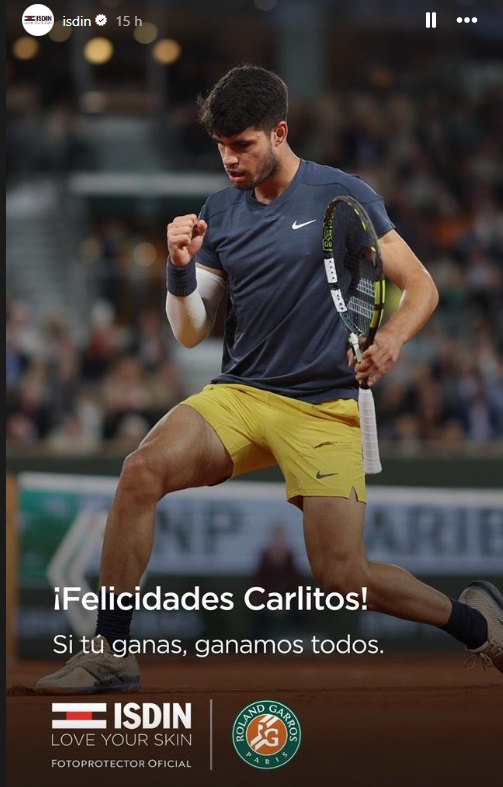 Crème solaire officielle de Roland-Garros depuis cette édition 2024, Isdin a également félicité l’espagnol sur son compte Instagram.