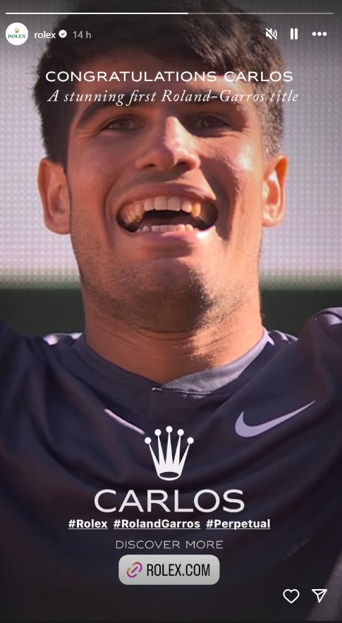 L’horloger Rolex, de son côté, a célébré son ambassadeur en TV avec un spot dédié à ce sacre quelques secondes après la fin du match. Sur les réseaux sociaux, la marque a également partagé quelques contenus.